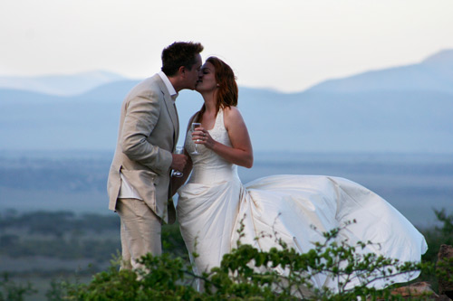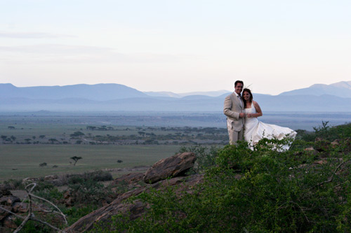 I received a lovely surprise email today which really made me smile a big happy smile! So… as a follow up to my wedding blog post please indulge me while I share some very special photographs that were taken by another couple that were staying at Olduvai Camp the same time as us. We met Doug and Jude over dinner on our first night at Olduvai but we didn’t mention a thing about our wedding plans. Imagine their surprise when, a couple of days later, they took “the sunset walk” to the top of some nearby kopjes to find Heiko and I celebrating our wedding! We waved across to each other and then Jude was quick to take some photos. It was really lovely to receive an email from her today with copies of the photos, and I LOVE them so much that I just had to share a few… :-)